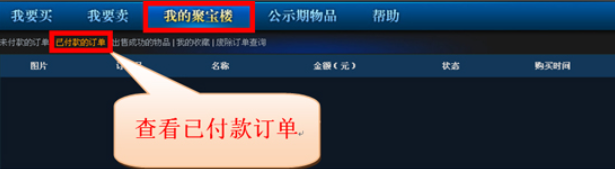 【已付款訂單】中可以查看已付款的訂單。已付款訂單中的物品有兩個狀態待收貨: 物品購買成功,但買家還未在游戲中取出;