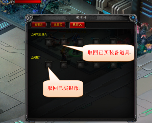 六、進入游戲內找“聚寶樓守衛-波比”,即可取出在聚寶樓購買成功的物品,在聚寶樓購買的物品沒有數量限制,成功取出后物品將進入背包內。(聚寶樓頁面和游戲內信息之間可能會略有延遲。)