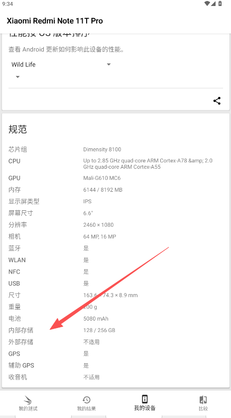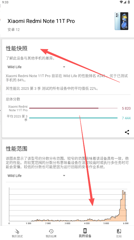點擊“我的設置”查看3DMark通過率的主要組成部分:性能快照、性能范圍、性能OS排行榜以及規范等具體配置詳細明細。