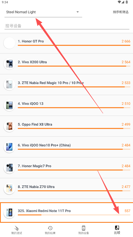 若是需要查看當前手機品牌與其他品牌的手機通過率對比,也可以通過“比較”功能去查看詳細。