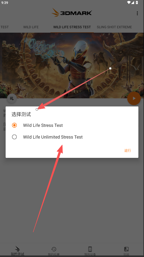 選擇你要的顯卡基準測試性能點擊“運行”。