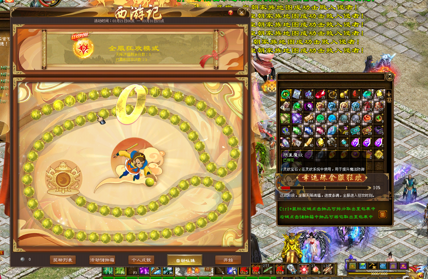 獲得幸運珠后,玩家可以前往王城多寶處打開幸運珠活動界面。在這個界面里,玩家會操控蟾蜍來消除珠子,并且每消除一次珠子都要消耗一顆幸運珠。需要留意的是,消除珠子這個看似簡單的操作,背后卻藏著大大的驚喜。玩家有機會觸發300秒的國家狂歡時刻,這時候所有珠子都會變成金色。在這珍貴的300秒里,擊碎金珠能夠獲得特殊成就獎勵,而特殊成就中的循環成就還可以重復完成并領取獎勵。因此,當進入國家狂歡時刻時,玩家一定要集中精神,盡量多地擊碎金珠,努力完成更多的循環成就,以此來獲取豐厚的獎勵。
