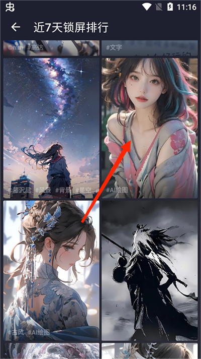 在“排行”頁面中,能夠查看“近7天壁紙排行”“近7天鎖屏排行”以及“近7天收藏排行”,這里是個不錯的參考。