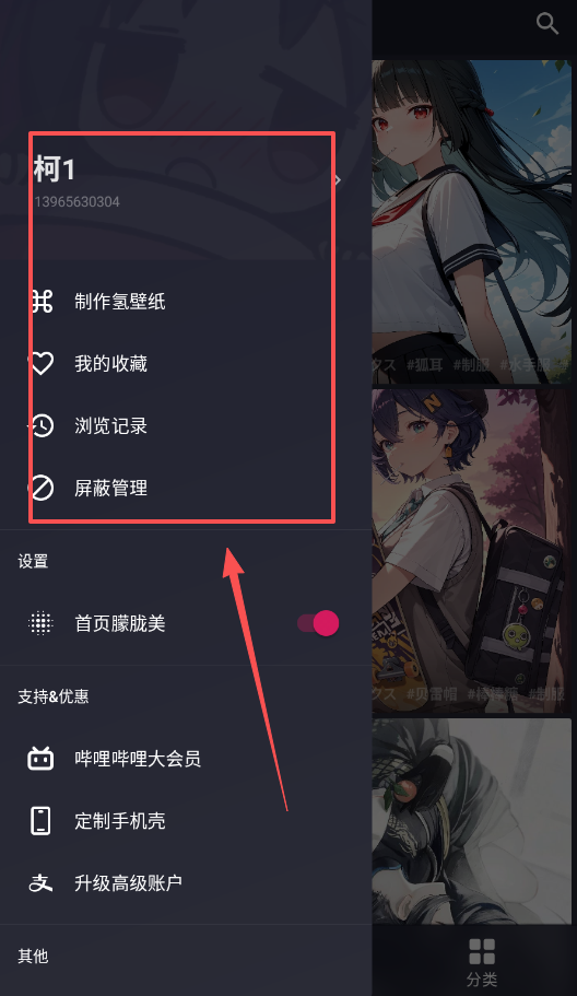 軟件還支持“嗶哩嗶哩大會員”權益,提供“定制手機殼”等福利,在“其他”選項里可以發現更多功能,讓壁紙使用體驗更加豐富多元。