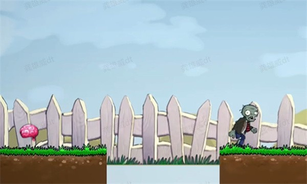有著相當多趣味十足的造型更改,整個游戲場景也都切換成為了PVZ里的樣子,你能否控制自己的僵尸去不斷的跳躍危險關卡,吃到腦子,然后成功通過關卡抵達檢查點!