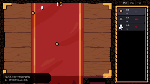 1、玩家可以擊硬幣來將其翻轉,如果是正面就可以獲得一金幣。