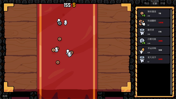 你持有的硬幣數量越多,能進行的拋擲次數也就越多。通過購買升級項目,可以讓硬幣的拋擲速度加快,同時帶來更豐厚的收益。去發掘各類硬幣之間奇妙的相互作用以及那些令人意想不到的協同效果吧。