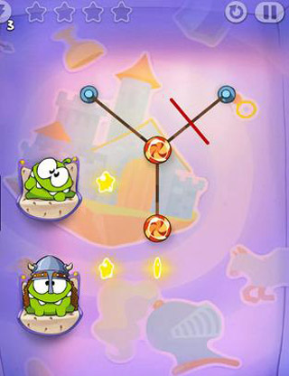 第一關是教學關卡,沒有難度,只需要先割斷第一條繩子,接著再割斷另一條就可以了。