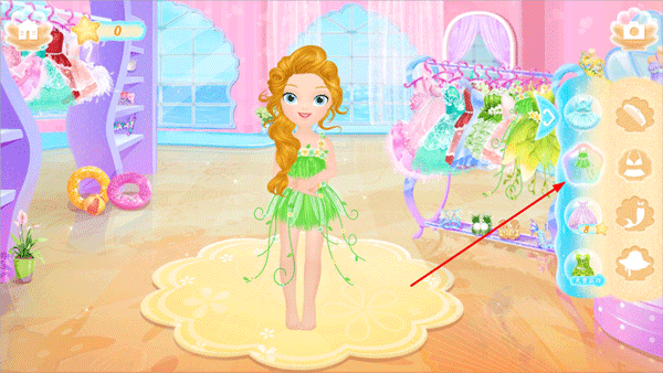 首先幫公主換上沙灘連衣裙,點擊右側的裝扮分類,就能為公主進行換裝了。