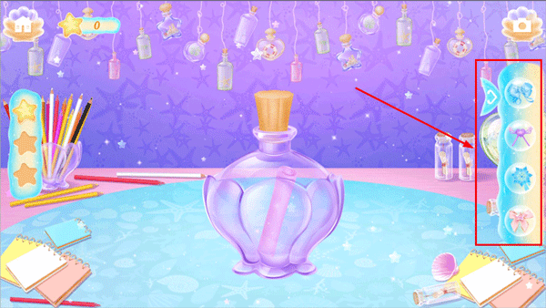 把信紙放到漂流瓶中,點擊右側選擇喜歡的裝飾;