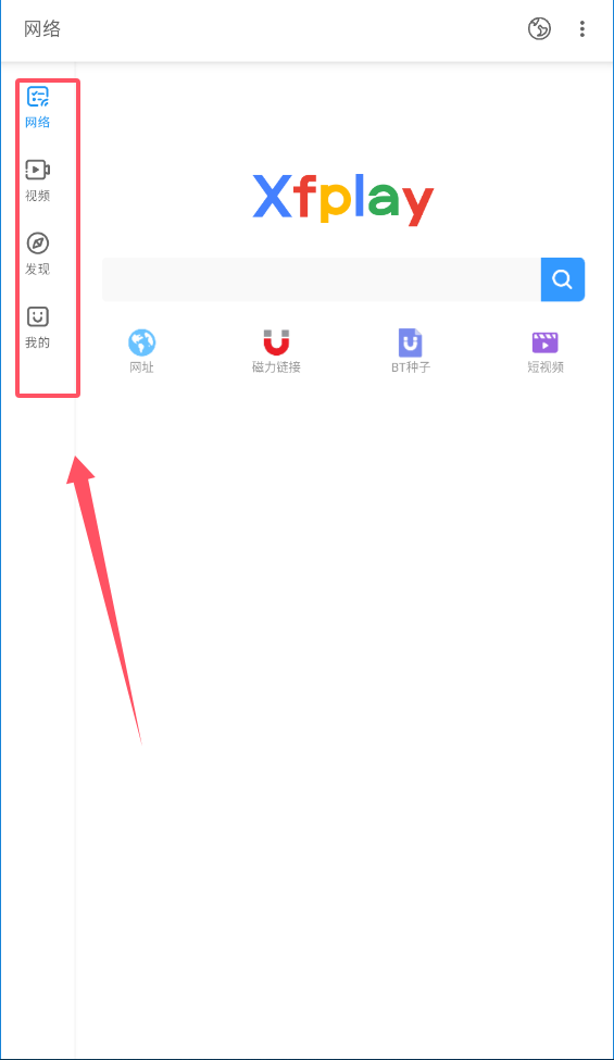 首先大家在手機桌面找到并打開【影音先鋒】應用,打開之后點擊界面右上角的功能鍵。(操作示意如下圖)