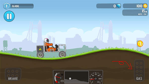 點擊右側的gas按鈕可讓賽車加速行駛,而brake按鍵的功能是倒車。