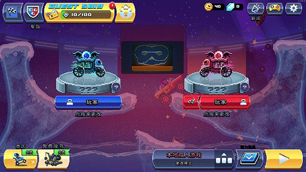 你可以自定義比賽,也能選擇隨機模式來一場驚喜配對!每局開始前都能挑選自己的賽車和比賽地圖,這里有多種不同賽道可供選擇。
