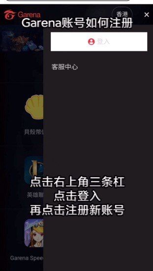 -點(diǎn)擊右上角三條杠,點(diǎn)擊登入,再點(diǎn)擊注冊新賬號