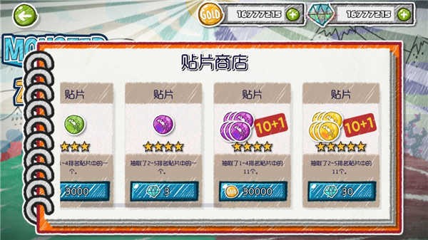 擁有增加怪獸、超級怪獸能力值的多樣貼片。