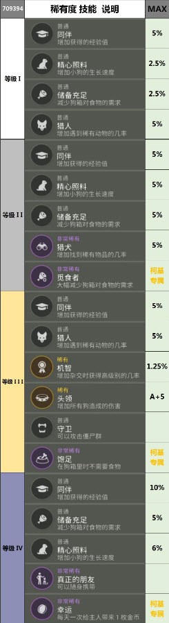 狗糧和狗狗3級技能;
