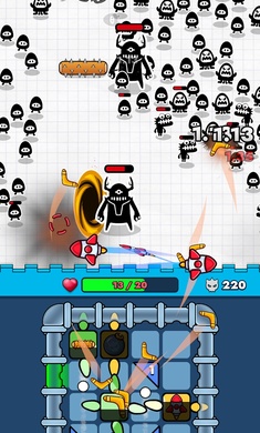 彈跳防御中文版是一款通過放置武器抵御怪物浪潮的休閑游戲。玩家可在游戲中布置各類武器,每種武器都能發射彈幕,以此擊敗源源不斷襲來的大量怪物,操作方式輕松自由。游戲過程中,玩家需避免自身血量歸零,全力阻擋所有怪物的進攻,感興趣的話不妨來體驗一番。