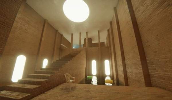 進入圓形區域黑暗樓梯的深處直至播放音效。