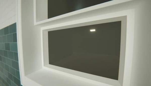 在第六章穿過大型桑拿房后,觀察樓梯間內的窗戶。