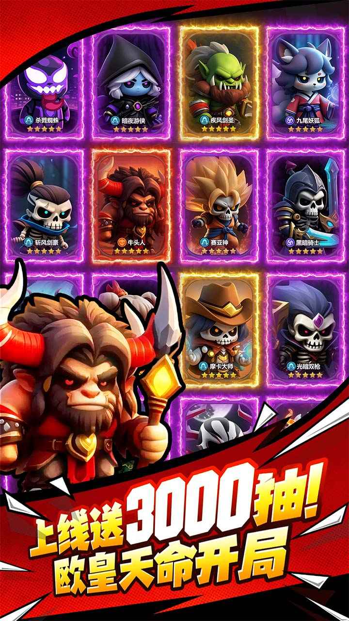 升級福利大放送!3000連抽瘋狂送!自選五星亡靈英雄、11星SSS級七尾妖狐,連續登錄就能直接抱走,開局輕松組建頂級強力陣容!每日簽到額外再領1000抽,等級每提升10級就送30抽,30級解鎖天命千抽福利,100%必出核心紅將!達成指定成就還能免費解鎖VIP特權,海量資源拿到手軟,零氪金也能暢享氪金大佬般的爽快體驗!