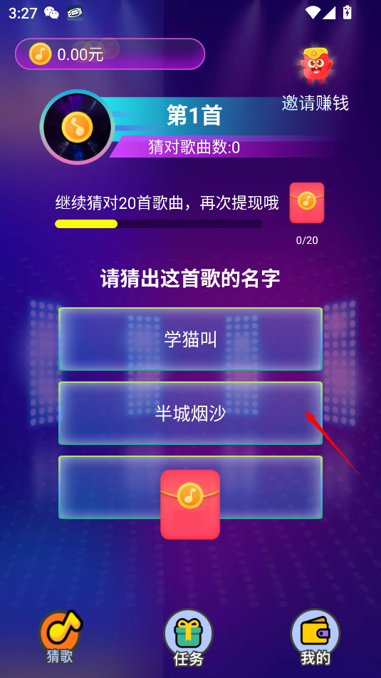通過聽歌曲片段來猜歌名獲取紅包獎勵