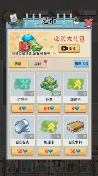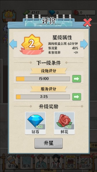 進入顧客界面后,完成升級就能領取禮物之類的獎勵,還能解鎖更多顧客前來光顧。