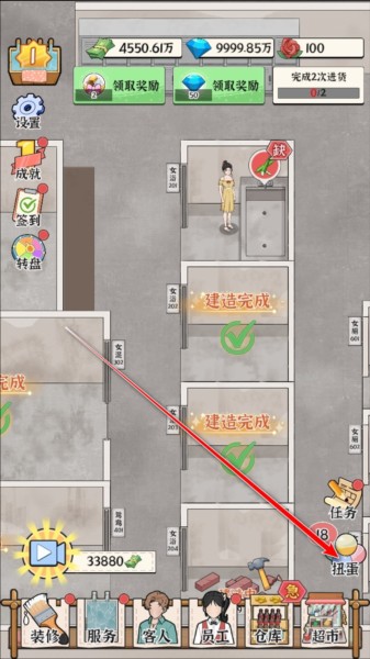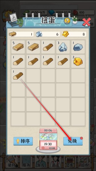點擊扭蛋按鈕能開啟各類扭蛋獲取資源,使用這些資源可兌換不同的裝飾物品。