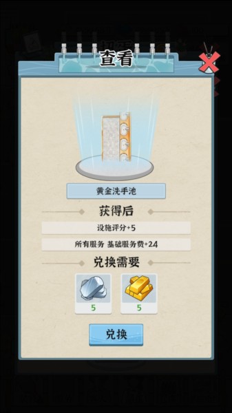 黃金屋的兌換需逐個設施進行,這里我們以洗手池為例,其他設施玩家可采用相同方法兌換,最終全屋就能變成黃金屋了。