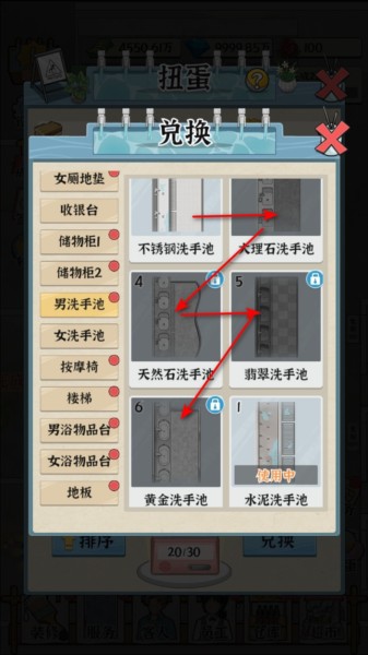 在解鎖完成前置設施后,我們就能著手購買黃金洗手池了。