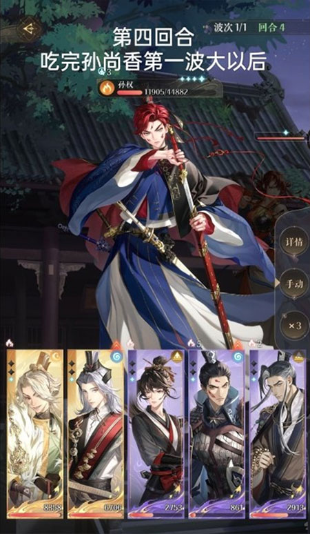 第四五回合:在孫尚香第二個大之前秒掉孫權,可以抗一波孫權的大(隨機失去一個隊友),這個時候我們可能還剩四個人。