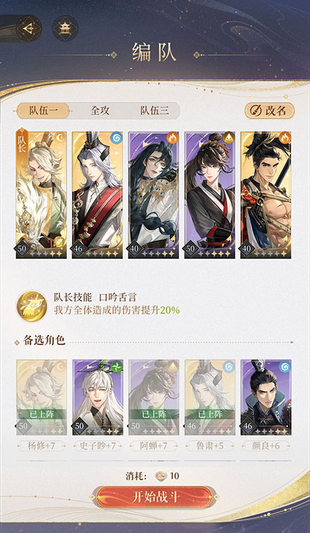 四個傷害最高的輸出(最好是單體)+一個盾(這里用的1w血顏良)。