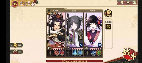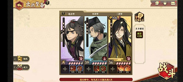 挑戰思路:降低敵方回血;上陣輸出強力武士。