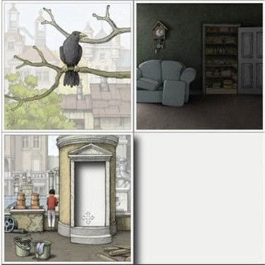 當男孩拿著盆子走出儲物室從樓頂出來,可以將第一格分至第三格,同時操作將第一格縮放點擊烏鴉。