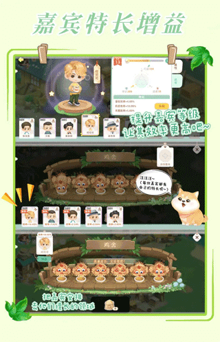 想要提升效率的話,不妨讓嘉賓們來助你一臂之力~收集對應的嘉賓碎片,就能提升嘉賓的特長等級,進而讓他們的效率得到提升哦。