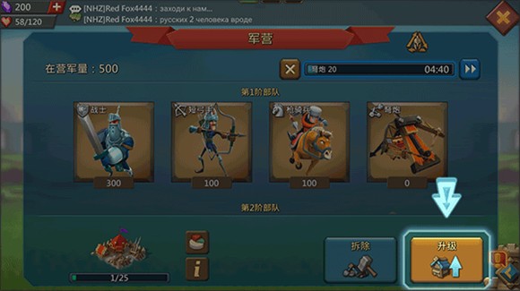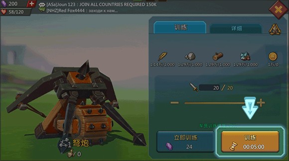 打開游戲,點擊軍營訓練士兵,建立起強大的兵團。
