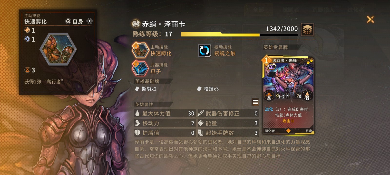 技能給兩張“爬行者”,技能等級每提升1級就多給一張,也就是等級+1時給三張哦~都是“爬行者”卡。