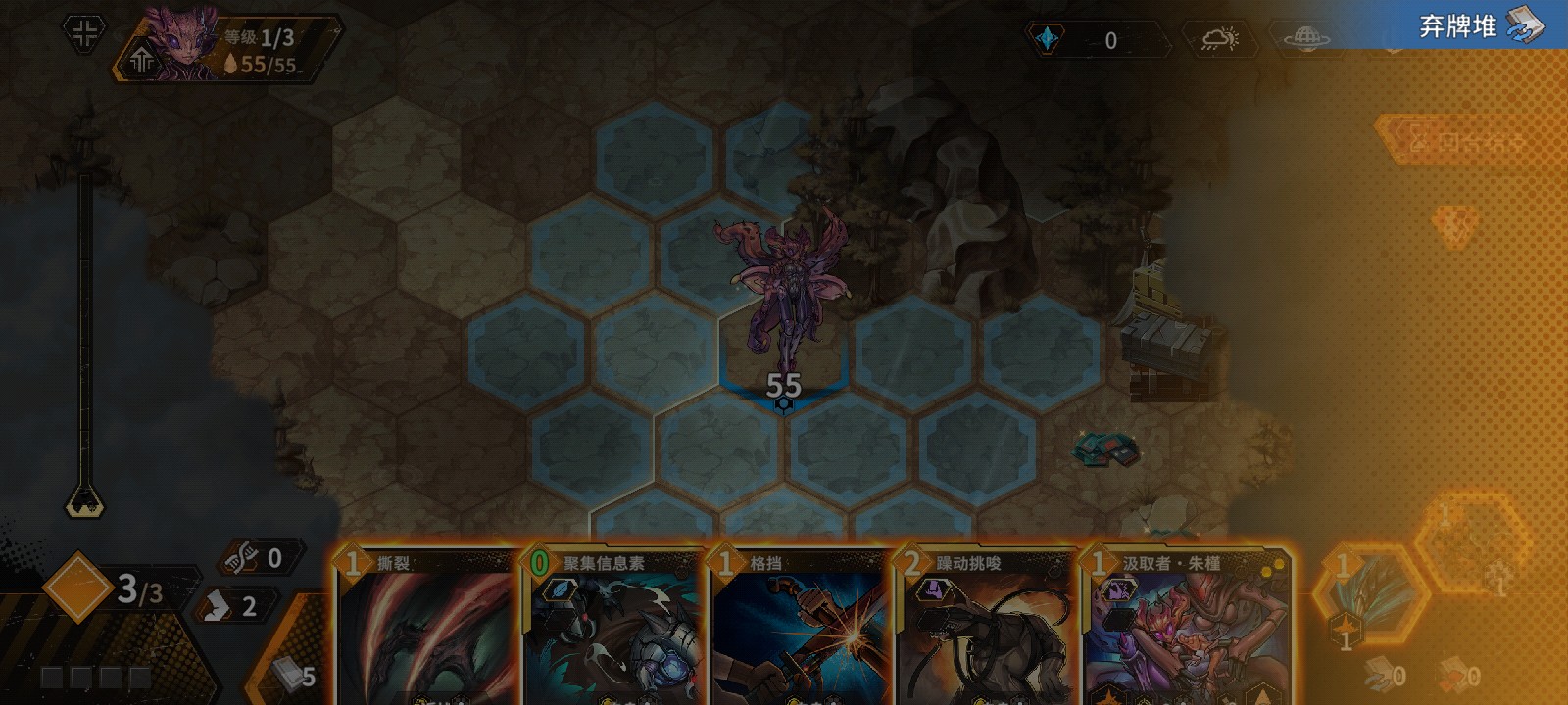 這是一個卡牌戰(zhàn)棋類玩法,玩家得依據(jù)實際狀況去組建屬于自己的牌組。