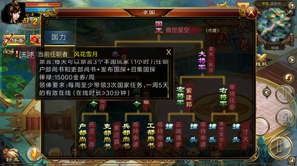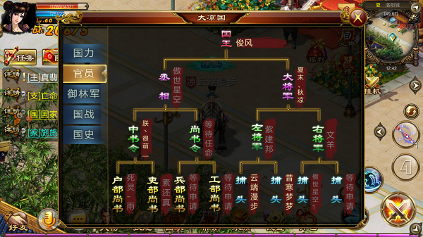 游戲內所有國家官員均由玩家擔任,六國各自設有如下官員體系: