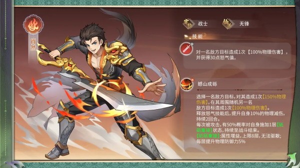 在釋放怒氣技能之后,自身的物理減傷效果會提高10%,該效果將持續2個回合。