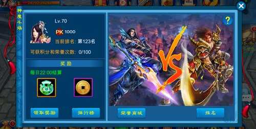 玩家無論比賽結果是贏是輸,都能得到榮譽值;不過輸的那一方會被扣除數額不等的PK積分(PK積分差距越大,扣除的積分就越少),而PK積分會直接對競技排行榜的排名產生影響。