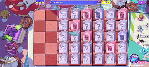 ② 個人建議開局時可以先把五個粉盒子都放在第一排,全部放好后,再從最后一排開始點擊盒子。