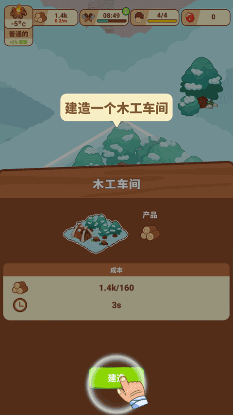 按照提示在指定地點搭建木工車間,確定位置后點擊“建造”按鈕即可啟動設施建設流程。