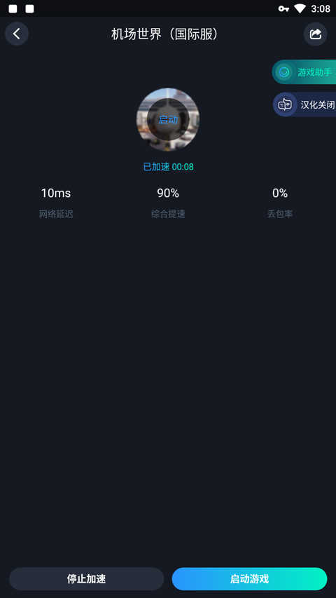因為機場世界的運行依賴加速器,所以我們得選擇一款加速器并點擊啟動加速功能。