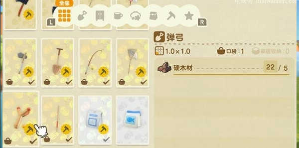 制作彈弓需要5份硬木材,這種材料只能靠用斧頭砍伐樹(shù)木時(shí)隨機(jī)掉落獲取。
