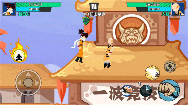 進入游戲,左邊輪盤控制人物角色進行移動,右邊按鍵可以發(fā)起進攻;