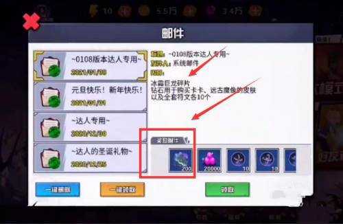 使用冰霜巨龍兌換碼后,打開游戲郵件。