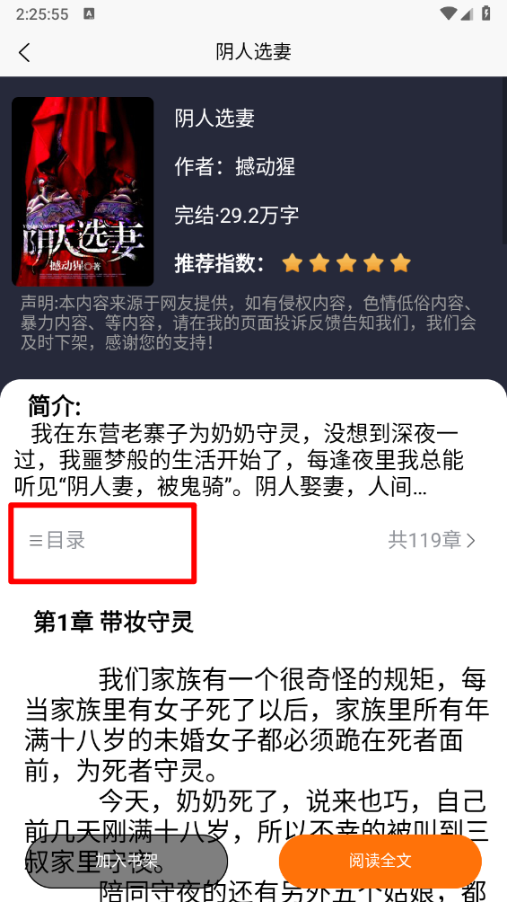 在小說詳情頁,點(diǎn)擊"目錄"。