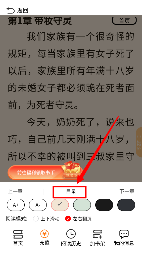 最后還可以在閱讀界面呼出菜單,點(diǎn)擊"目錄"查看。
