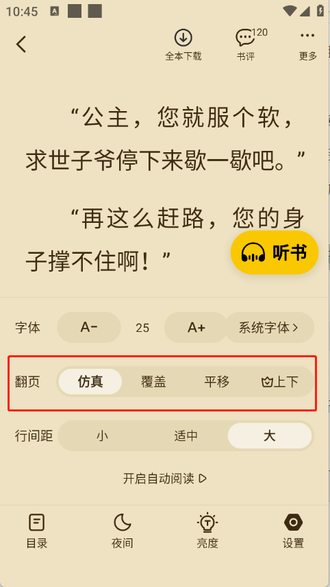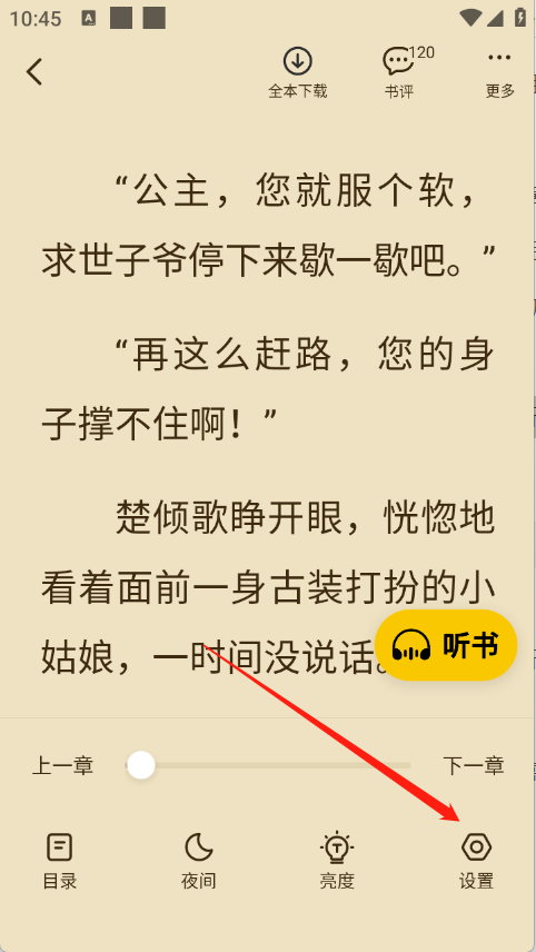 找到想看的小說以后,進入閱讀頁面,點擊“聽書”。