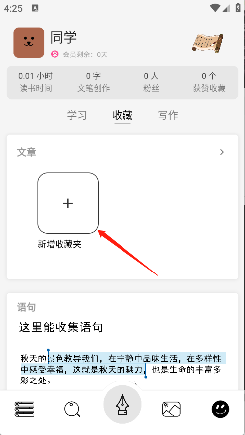 自由練筆寫作與在線自習(xí)室:用戶能自由上傳自己的文筆作品,一同“華山論劍”切磋交流;這里設(shè)有自習(xí)室、讀書會、文學(xué)社等豐富板塊,快快來打卡參與吧!